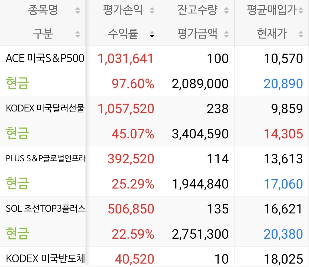 개인적으로 가상화폐, 금, 국내외 주식과 채권, 펀드 기타 파생상품들을 소액으로 학습삼아 조금씩 투자해봅니다만, 수익성과 안정성 측면에서 현재까지는 ETF상품들이 나쁘지 않았습니다. 물론 커버드콜이나 인버스 등 일부는 최근들어 수익률이 낮아졌습니다만 배당금 등을 고려해서 여전히 보유중입니다.